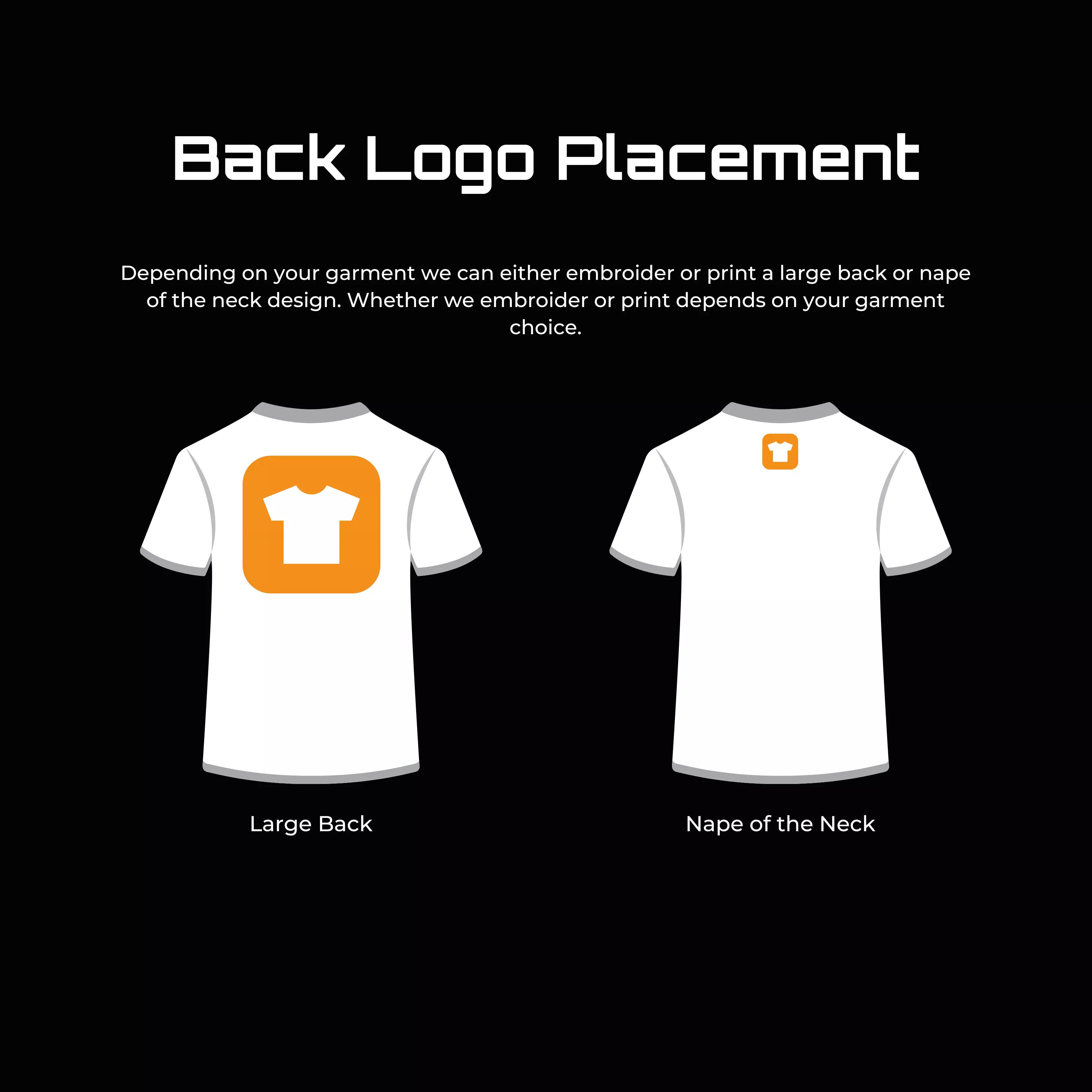 Depending on the layout of your logo, determines the size of your logo. For a left chest logo we work with a maximum size of 10.5cm wide. For a large back logo we tend to set our logos up at approximately 24cm wide. This size is carefully chosen to be bold and easily readable from a distance, without being so large that it loses its shape or becomes disproportionate on the garment. For both embroidery & print small text needs to be a minimum of 6mm in height to achieve good readable quality.